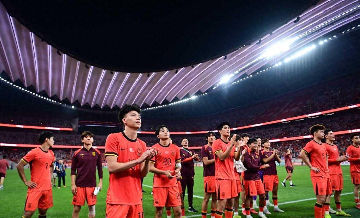 比赛即将开始。 电视转播画面里,费萨尔·本·法赫德王子体育场灯火通明,看台上已有中国球迷挥舞国旗。 裁判员正在检查比赛用球,双方球员在通道内等待入场。