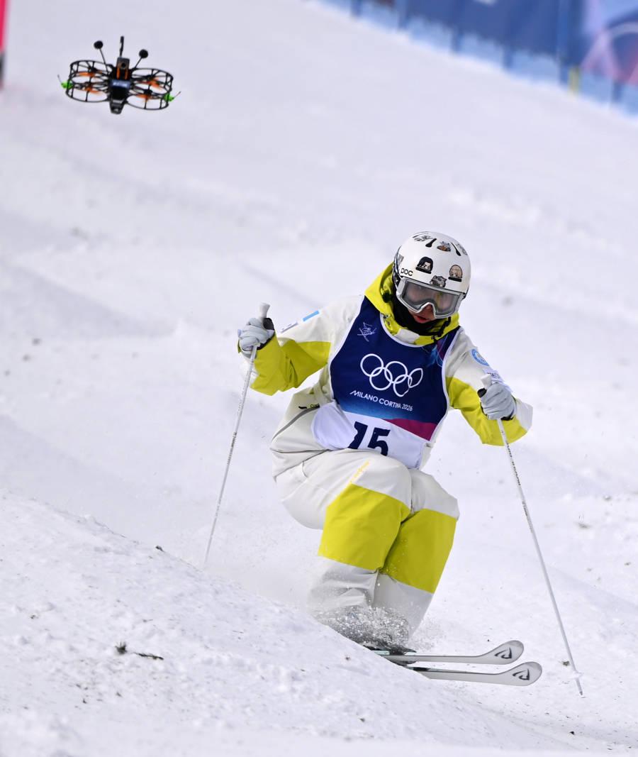 这是冬奥会历史上首次将FPV无人机作为核心现场直播工具,本届赛事共部署25架无人机,其中15架为FPV无人机。摆脱了线缆与地面的束缚,FPV无人机能够以接近运动员比赛的速度进行跟拍,这一沉浸式视角,能以其他拍摄设备无法企及的方式,传递赛场的速度感、地形的细微变化,以及运动员娴熟的技术技巧。