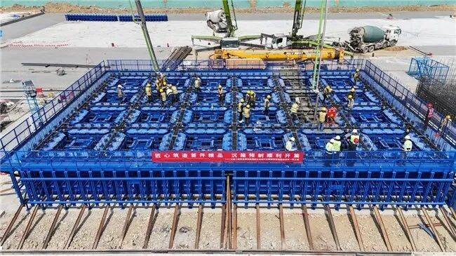 本次浇筑的首件沉箱为CX-B型,尺寸长16米、宽24米、高15米,首次浇筑高度2.4米。单个沉箱设计混凝土用量约1300立方米,钢筋用量约150吨,成型后重量达约3500吨,属于典型的大型预制构件工程。该节点的顺利完成,为后续海上安装作业奠定了坚实基础。