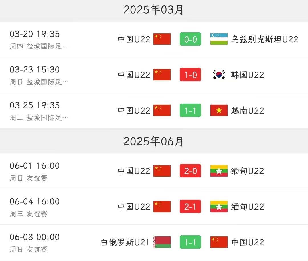【2】U-16友谊赛:新一届的中国U-16男足,吸取了上一届因热身赛不足导致在年初的U-17亚洲杯上遗憾出局的教训,2025年参加了法国蒙太古杯、沈阳和平杯、荷兰三国杯、呼和浩特四国赛等赛事,热身对手、成绩包括0-0法国、0-3荷兰、1-1威尔士、1-0喀麦隆、0-2墨西哥、2-1沙特、5-2澳大利亚、1-1日本、2-1乌兹、2-2越南、3-4韩国等队,对手遍布全世界,主打热身精英强队的策略,确保首先晋级明年的U-17亚洲杯,然后争取亚少赛上取得好成绩,力争晋级世少赛。