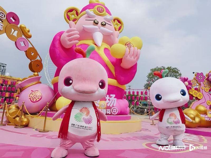 广州融创乐园将大年初五迎财神打造成“人神共乐”的热闹派对,当天,五福财神、巨型粉红财神全都到场,财神NPC更是多到数不清,还有顶流“大湾鸡”到场助阵,市民游客热情高涨,全情参与了仙官赐福巡游、鱼灯巡游、花魁巡游、日夜花车巡游、五福财神巡游等阵营。